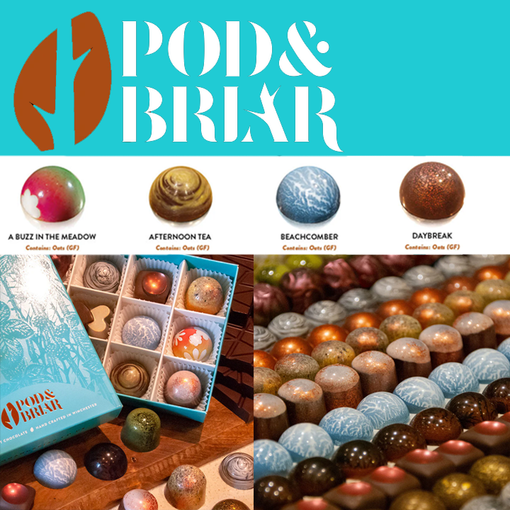 Pod & Briar is a Winchester-based artisan chocolatier passionately crafting premium, responsibly sourced chocolates infused with British craft produce and wild flavours. All their ranges are vegan-friendly, soya-free, gluten-free, and wrapped in plastic-free packaging. Whether you’re choosing from their curated selection boxes, creating your own flavour mix, surprising someone with wedding favours, or joining a hands-on chocolate-making workshop, Pod & Briar brings joy and flavour to every occasion.